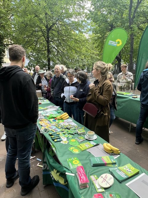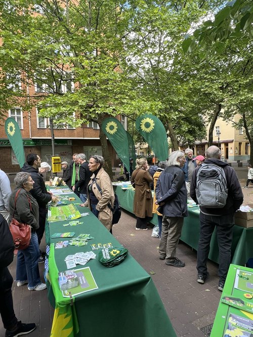 Anschließend gab es die Möglichkeit, miteinander, mit Vertreter*innen unserer Arbeitsgruppen, den Landesarbeitsgruppen, Jana Brix aus dem Landesvorstand, Verordneten aus der BVV, Vorstandsmitgliedern, der Bezirksbürgermeisterin Kirstin Bauch, dem Stadtrat Oliver Schruoffeneger, den Mitgliedern des Abgeordnetenhauses June Tomiak, Christoph Wapler und Petra Vandrey sowie der Bundestagsabgeordneten Lisa Paus ins Gespräch zu kommen.
