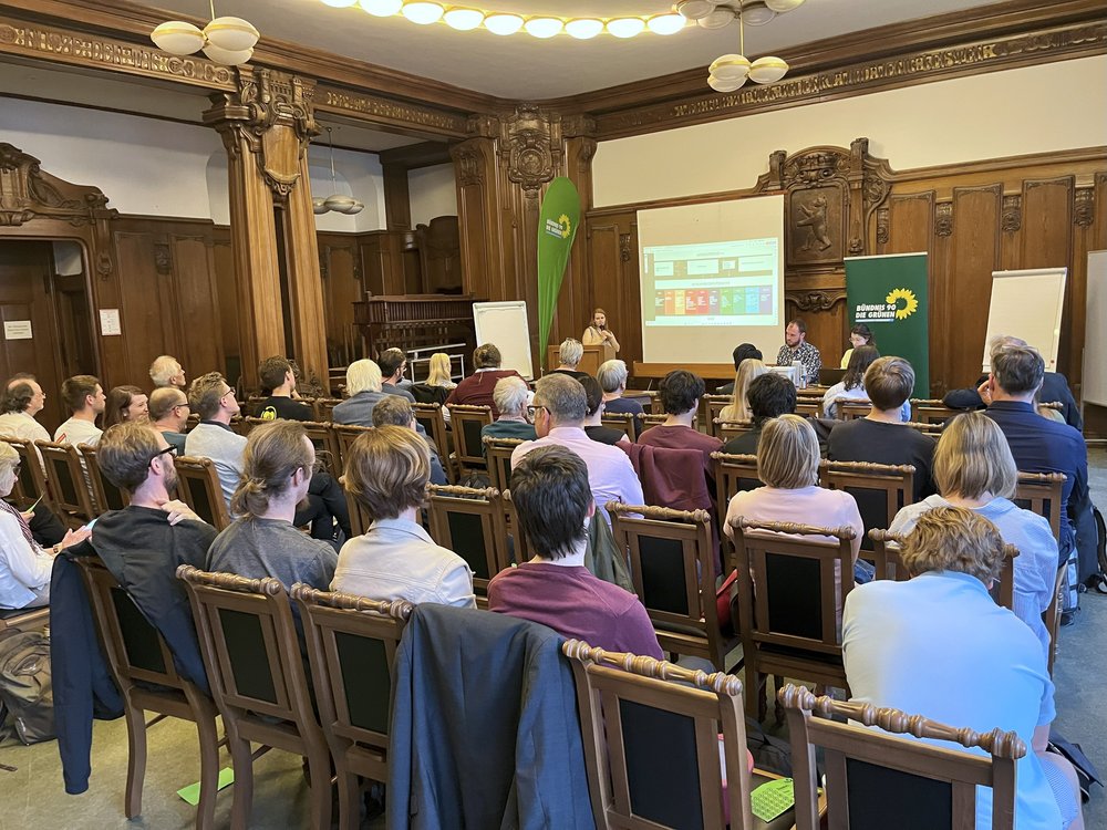 Wir haben uns intensiv mit dem Wahlprogrammprozess zur Abgeordnetenhauswahl 2026 beschäftigt. Jana Brix, die unseren Kreisverband seit drei Jahren im Landesvorstand als frauen- und genderpolitische Sprecherin vertritt, hat uns den Prozess vorgestellt, mit dem unser Landesverband in den nächsten Monaten unser Grünes Wahlprogramm für Berlin entwickeln wird.