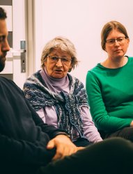 Zum Abschluss stellte Taylan Kurt, GRÜNER Sprecher für Sozialpolitik und Armutsbekämpfung im Abgeordnetenhaus, das kürzlich verabschiedete Zehn-Punkte-Positionspapier zur Überwindung der Obdachlosigkeit dar. Housing First, also der niederschwellige Zugang zu einer eigenen Wohnung als Grundlage, um wieder eine Lebensperspektive jenseits der Straße entwickeln zu können, ist einer der Grundpfeiler. Aber es geht auch um Rechtewahrung, Vernetzung vieler Hilfsangebote und die zur Verfügung Stellung von Hospizplätzen. Taylan hat wohl vielen aus dem Herzen gesprochen, dass er sich nie damit abfinden möchte, dass Menschen auf der Straße sterben müssen. Für all das müsse man jetzt investieren, um letztendlich sogar zu sparen, indem nachhaltige Maßnahmen auf den Weg gebracht werden. Die Anwesenheit einiger bei UfO (Berliner Union für Obdachlosenrechte) Engagierter bereicherte die Diskussion. Sie forderten weniger „Pflaster“ seitens der Politik, sondern mehr Prävention. Dieser Forderung konnten sich viele anschließen.