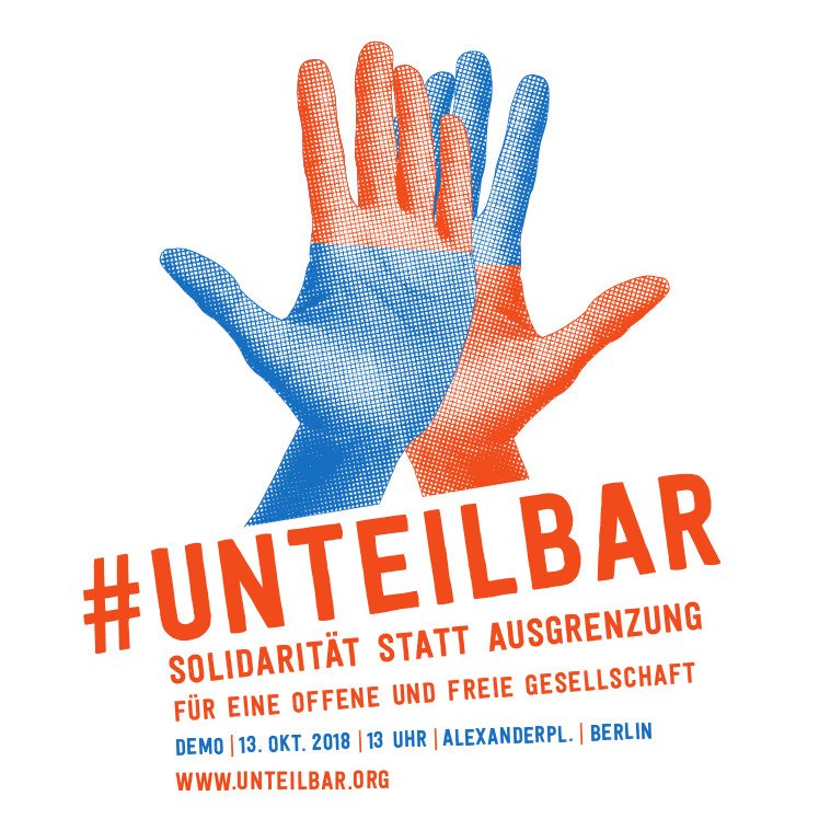 #unteilbar Für eine offene und freie Gesellschaft – Solidarität statt Ausgrenzung Demonstration: 13. Oktober 2018 – 13:00 Uhr Berlin